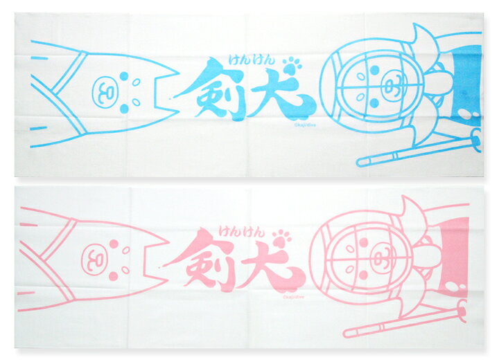 ★卒業記念 刺繍無料★面タオル『剣道犬の剣犬(けんけん)』 [剣道 面タオル 手ぬぐい]